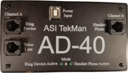 This unit was designed for today’s demands and looking to the future. The default setup for the AD-40 is the Local Access Simulator mode. This mode lets a local phone have access to a telephone answering system, without the cost of an additional phone line. The AD-40 can also be set to function as a Phone-To-Phone, True Tone Telephone Line Simulator that provides 48V on hook along with True: Dial Tone, Busy, Reorder, SIT, FAX Intro Tone, and both US Ring Up/Ring Back and UK Dual Ring Up/Ring Back signals.